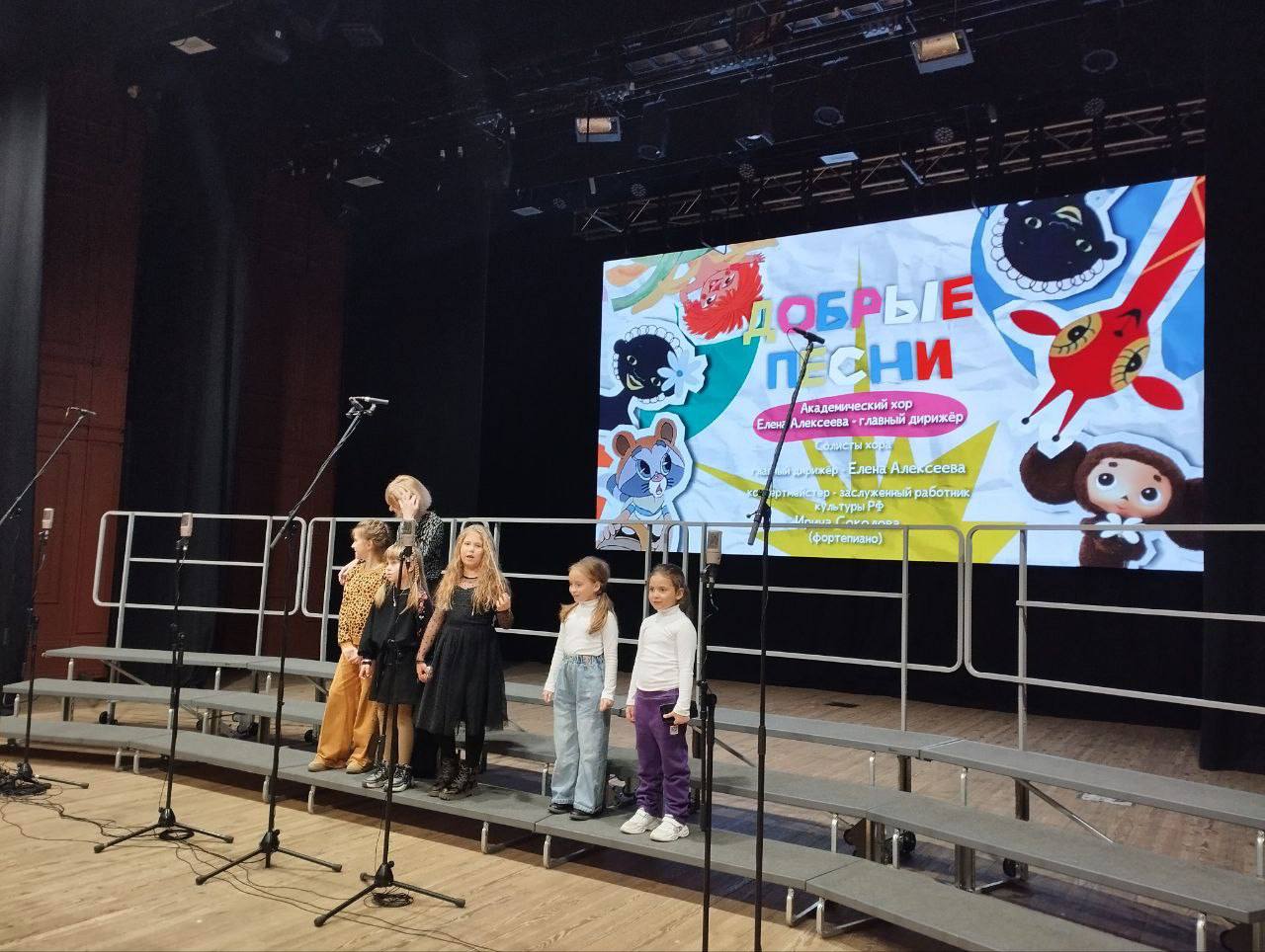 Академический хор под управлением Елены Алексеевой исполнил знакомые всем сочинения Владимира Шаинского, Геннадия Гладкова, Евгения Крылатова, Марка Минкова.