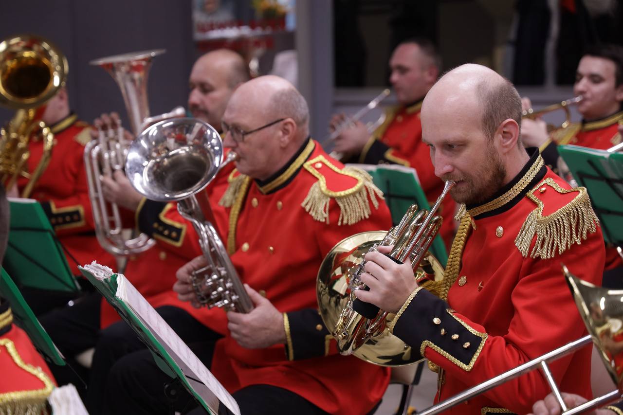 В фойе Центра играл духовой оркестр, а в атриуме расположилась выставка, отражающая жизнь поселений Белгородского округа, экспозиция оружия и ярмарка изделий народных мастеров.