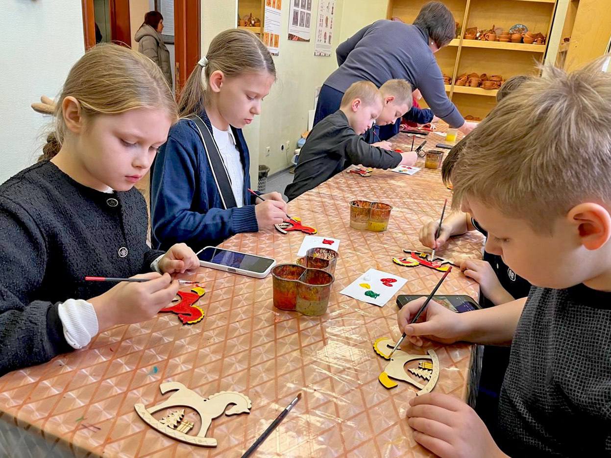 Вдохновением для ребят стали подлинные произведения из коллекции музея: расписные керамические тарелки, яркие лоскутные панно и шкатулки. А ещё — знаменитые глиняные игрушки из Филимонова, Дымкова, Старого Оскола и Суджи.