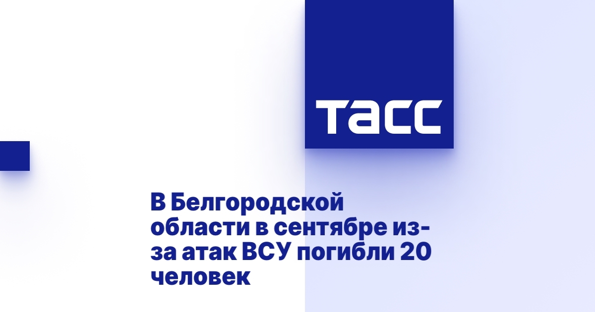Ранения получили 185 жителейРедакция сайта ТАСС06:05БЕЛГОРОД, 4 октября. /ТАСС/. На территории Белгородской области в сентябре 20 человек погибли в результате атак ВСУ. Ранения получили 185 жителей, сообщил губернатор региона Вячеслав Гладков в своем Telegram-канале.
