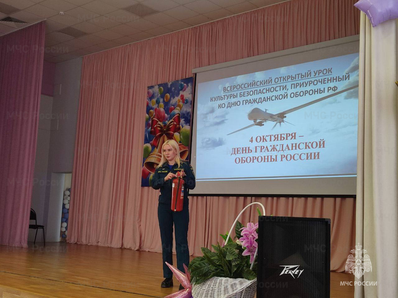 Так, в гимназии № 3 и в средней общеобразовательной школе № 24 областного центра старший дознаватель отдела надзорной деятельности и профилактической работы города Белгорода Олеся Вандышева рассказала ученикам, как создавалось и развивалось чрезвычайное ведомство, кто стоял у истоков становления, как изменилась пожарная техника. Познакомила ребят с основными задачами гражданской обороны и её ключевой ролью в обеспечении безопасности нашей страны. Для наглядности и лучшего усвоения материала она продемонстрировала школьникам тематические видеоролики. Занятие сопровождалось показом средств индивидуальной защиты: противогазов, респираторов и костюма Л-1, которые предназначены для защиты кожных покровов человека, одежды и обуви от воздействия отравляющих веществ.
