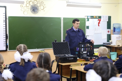 Ежегодно в нашей стране 19 октября празднуется День криминалистики. О том, как работают следователи на местах происшествия, что находится в криминалистическом чемодане и какие достижения технического прогресса используются сотрудниками СК России, рассказал учащимся 7-го кадетского класса следователь-криминалист регионального управления Денис Геннадьевич Поплавский.