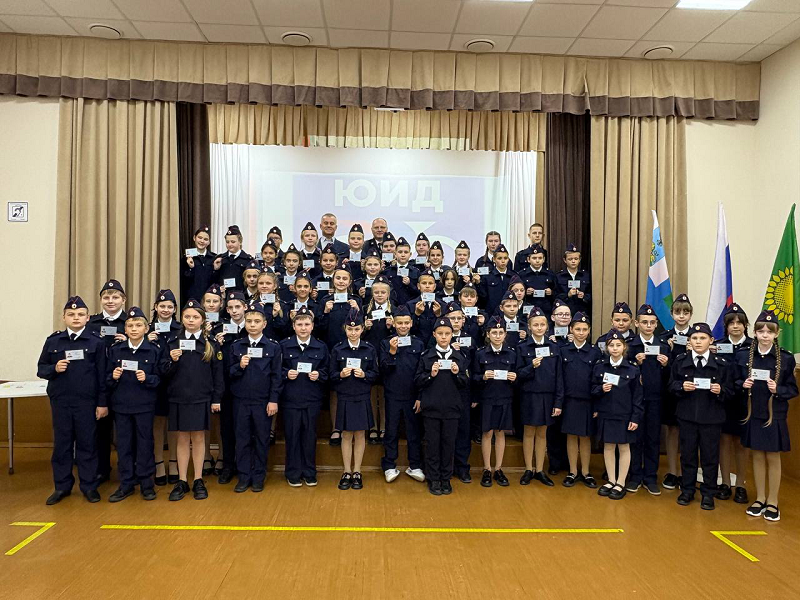 В Алексеевке состоялась церемония посвящения школьников в ряды кадетов Госавтоинспекции. Более 50 мальчиков и девочек получили свои первые удостоверения из рук автоинспекторов.
