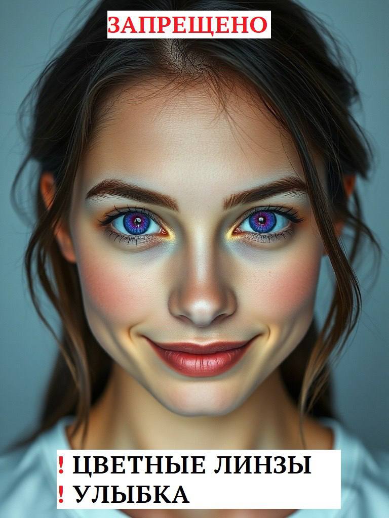 Внимание: не допускаются блики на стеклах, а также наличие линз, изменяющих цвет глаз.