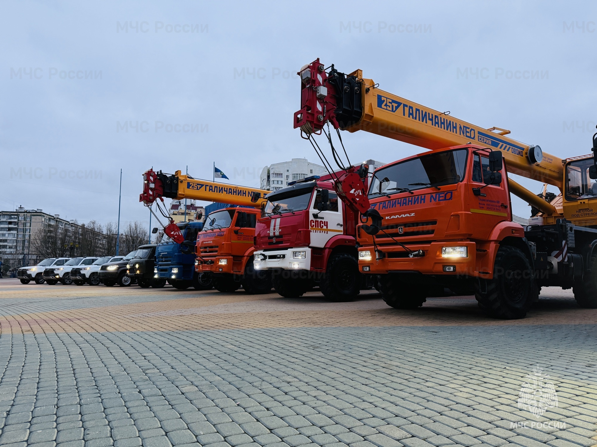 В этот день автопарк Главного управления пополнился двумя автокранами, двумя грузовыми бортовыми автомобилями и пожарным насосно-рукавным автомобилем. Также в распоряжение спасателей поступили 10 легковых транспортных средств: два автомобиля «УАЗ», два автомобиля «УАЗ Патриот» и шесть автомобилей марки «Лада Нива».