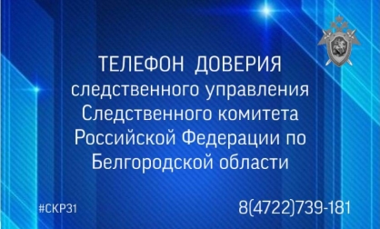 В региональном следственном управлении функционирует телефонная линия «Телефон доверия», предназначенная для получения информации, совершенствования деятельности следственного управления Следственного комитета Российской Федерации по Белгородской области, оперативного реагирования на сообщения о коррупционных проявлениях в деятельности сотрудников ведомства, а также для более эффективного обеспечения защиты прав и законных интересов граждан.
