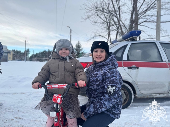 В новогодние праздники росгвардейцы помогли осуществить заветные желания троих юных жителей района. Сняв с праздничной ёлки шары с детскими желаниями, сотрудники ведомства взяли на себя задачу подарить каждому ребёнку именно тот подарок, о котором мечтали дети. Так, 11-летняя Дарья получила современные беспроводные наушники, 5-летнюю Екатерину порадовал плюшевый единорог, а 4-летняя Дарья стала обладательницей нового детского велосипеда.