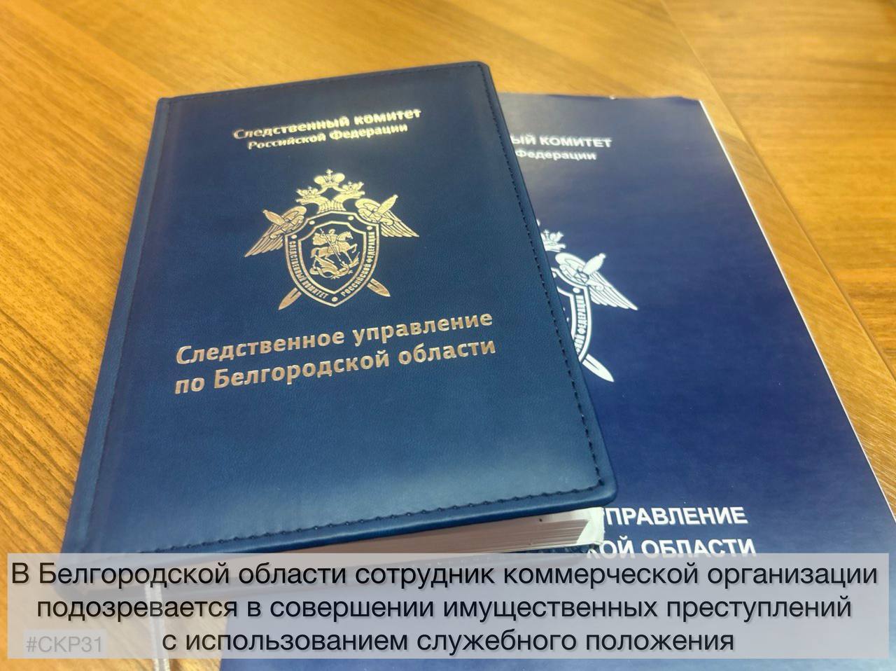 В Белгородской области сотрудник коммерческой организации подозревается в совершении имущественных преступлений с использованием служебного положения