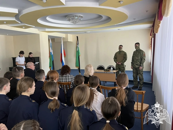 В рамках патриотического проекта «День с героем СВО», военнослужащие Росгвардии, выполняющие задачи по защите приграничья, встретились с учащимися Комсомольской средней общеобразовательной школы.