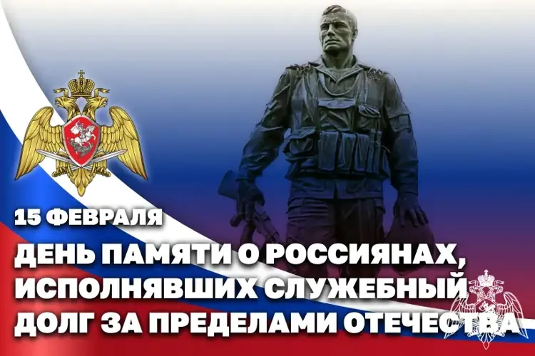 Ежегодно 15 февраля в Российской Федерации отмечается День памяти о россиянах, исполнявших служебный долг за пределами Отечества. Памятная дата установлена в 2011 году и приурочена к завершению вывода советских войск из Афганистана в 1989 году.