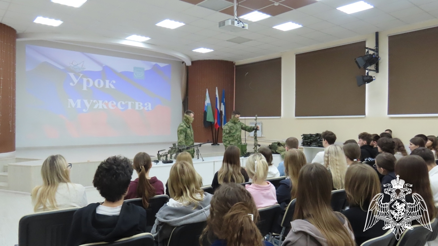 В рамках патриотической акции «Дни Росгвардии», приуроченной к 10-й годовщине образования Росгвардии и 215-летию войск правопорядка, военнослужащие спецназа, выполняющие задачи по прикрытию государственной границы в Белгородской области встретились с учащимися старших классов МАОУ Центр №1 города Белгорода.