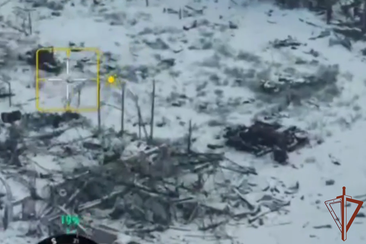 Расчет БПЛА закрепил радиостанцию в специальной укладке на дрон и точным сбросом передал ее военнослужащему, находящемуся на линии боевого соприкосновения. Кадры объективного контроля зафиксировали момент доставки груза.