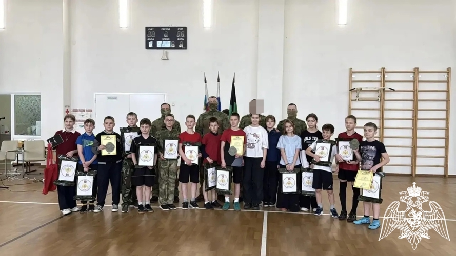 Торжественный день начался со спортивной эстафеты, в которой приняли участие воспитанники кадетских классов. Ребята соревновались в ловкости, скорости и командной слаженности, демонстрируя физическую подготовку и волю к победе. Росгвардейцы выступили в роли наставников и судей, поддерживая юных участников и оценивая их результаты.