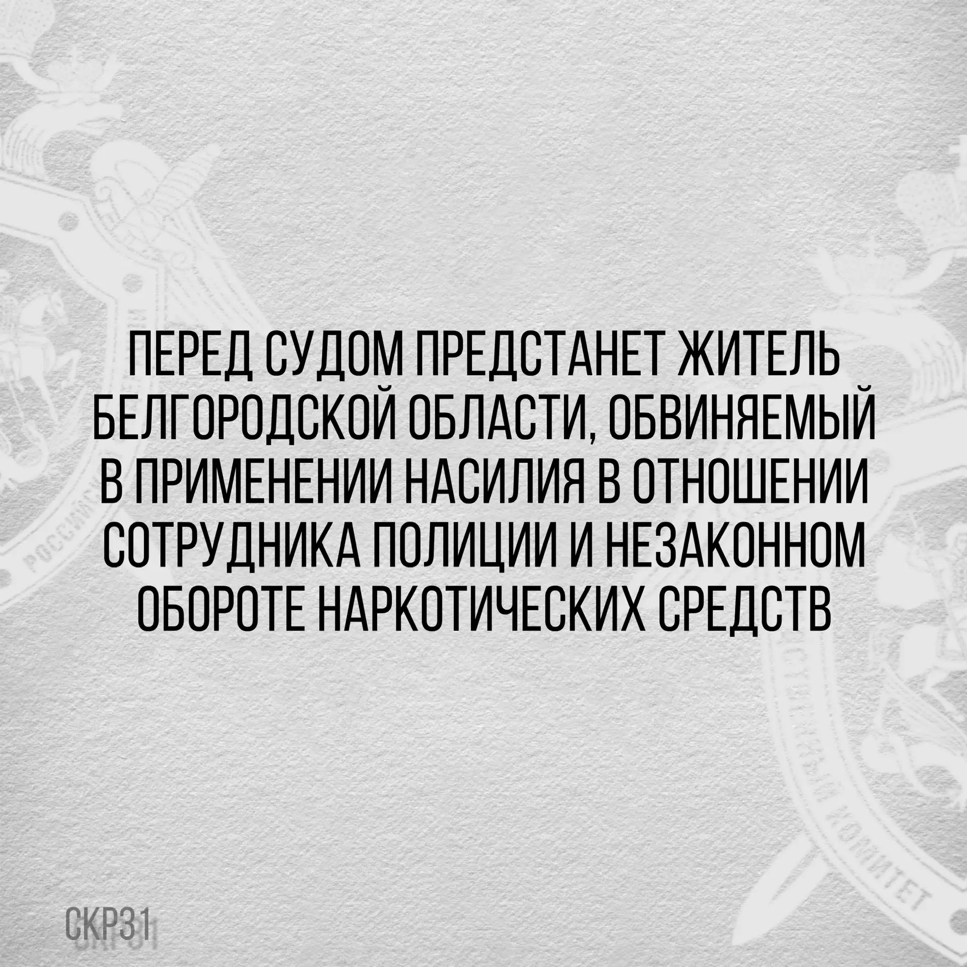 Перед судом предстанет житель Белгородской области, обвиняемый в применении насилия в отношении сотрудника полиции и незаконном обороте наркотических средств