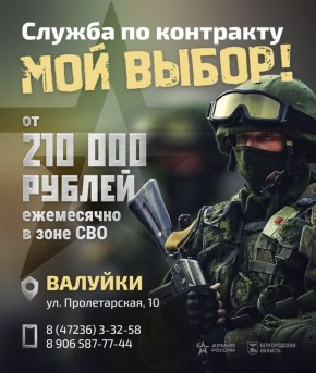 Пункт отбора на военную службу по контракту с Министерством обороны РФ в Белгороде ведёт набор бойцов со всей России.Заключить контракт могут мужчины до 65 лет. Опыт службы в армии и военный билет — не обязательны.Добровольцев ждёт серьёзная...