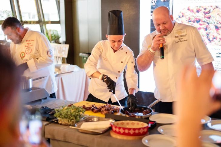 Бренд-шефы ведущих заведений полуострова представили четыре уникальных блюда с использованием ингредиентов из реестра крымских специалитетов – улиток, баранины, кефали, мяса рапаны, черноморских креветок, сыра, инжира, винограда, миндаля и других продуктов.