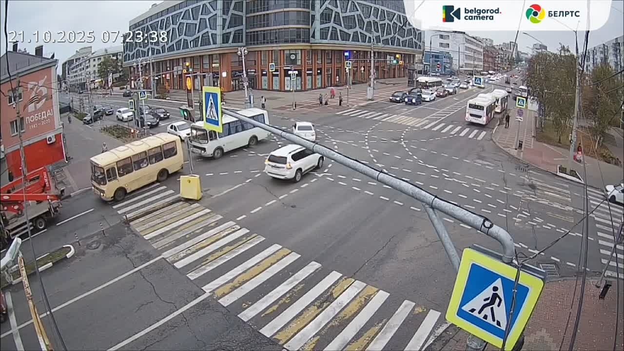 Девушка перебегала дорогу на красный свет на перекрёстке Гражданского проспекта и улицы Белгородского полка.