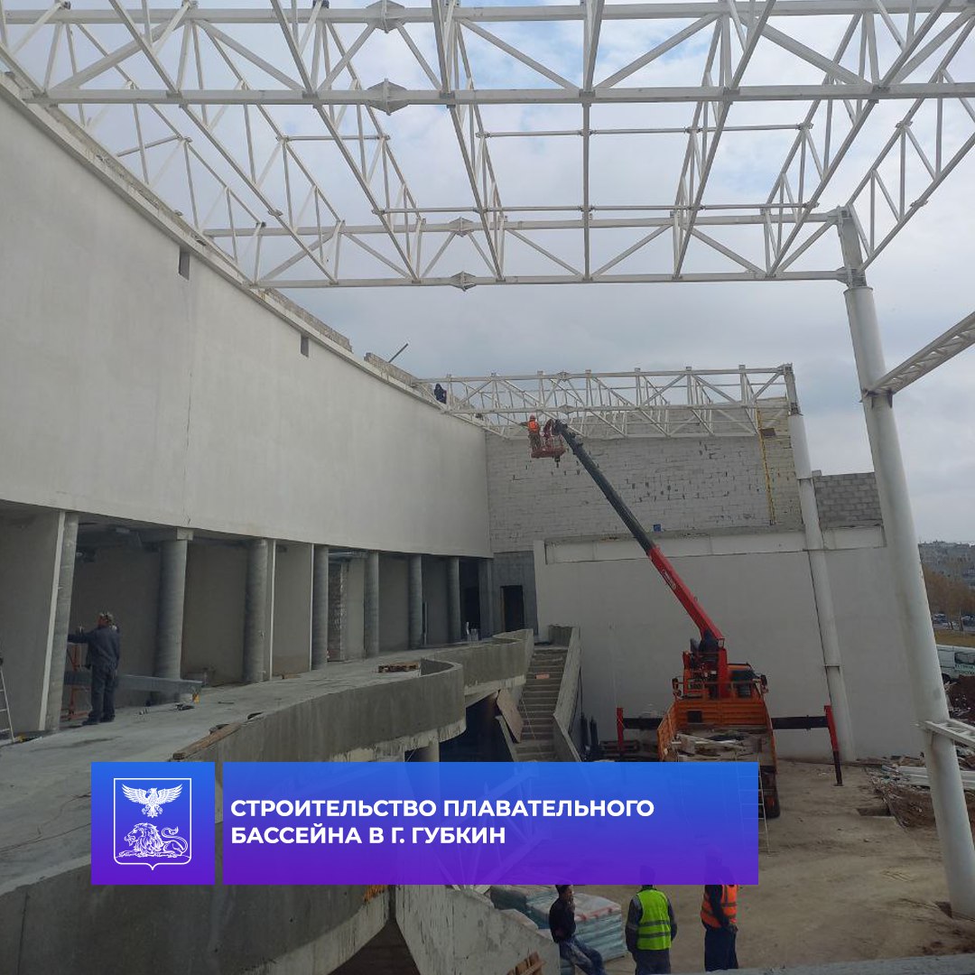 Рабочие продолжают строительство плавательного бассейна в Губкине