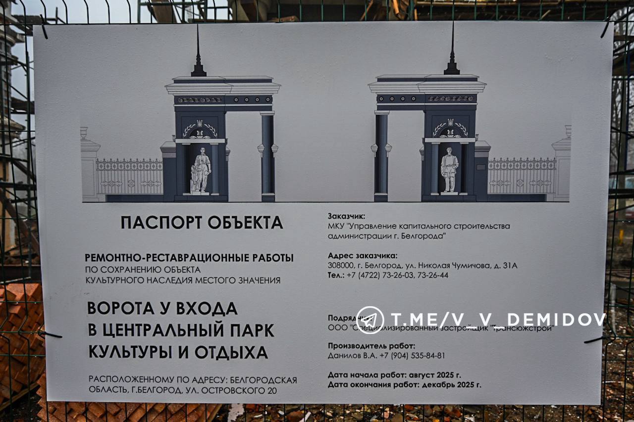 Мэр Белгорода рассказал о ходе реставрации входной арки в парке Ленина