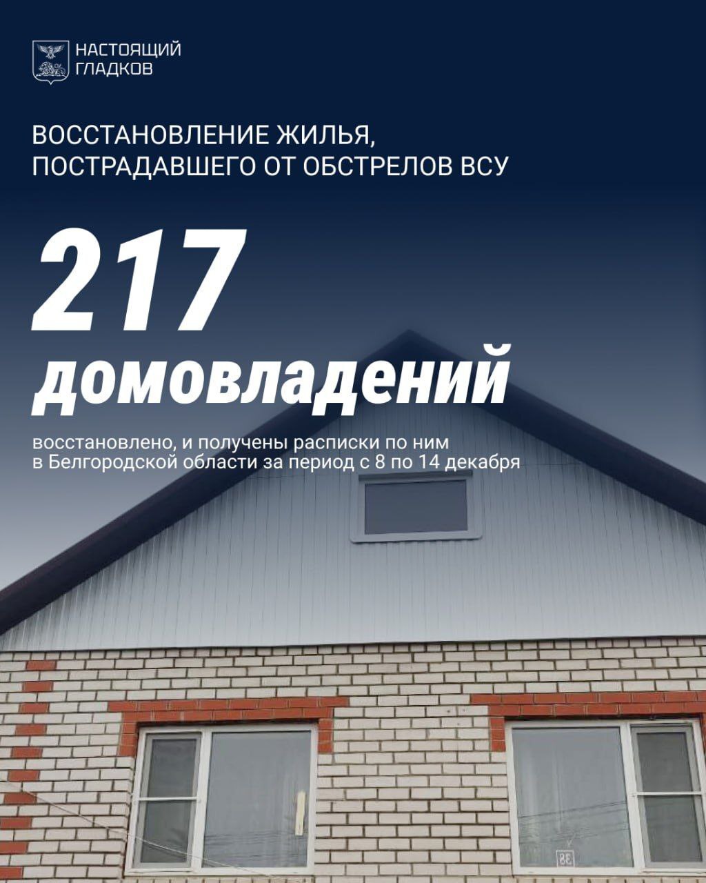 Взрыв раздался прямо над его головой. Всё произошло в начале декабря.Сейчас здесь, на улице Котовского в областном центре, трудятся строители. Стекольщики меняют окна. Всего в Белгороде ещё предстоит восстановить свыше 300 жилых помещений.Telegram |...