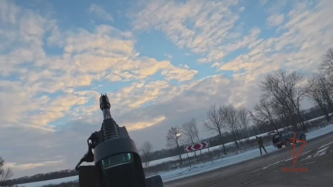 Вражеский дрон самолётного типа бойцы мобильных огневых групп Росгвардии уничтожили огнём из стрелкового оружия.