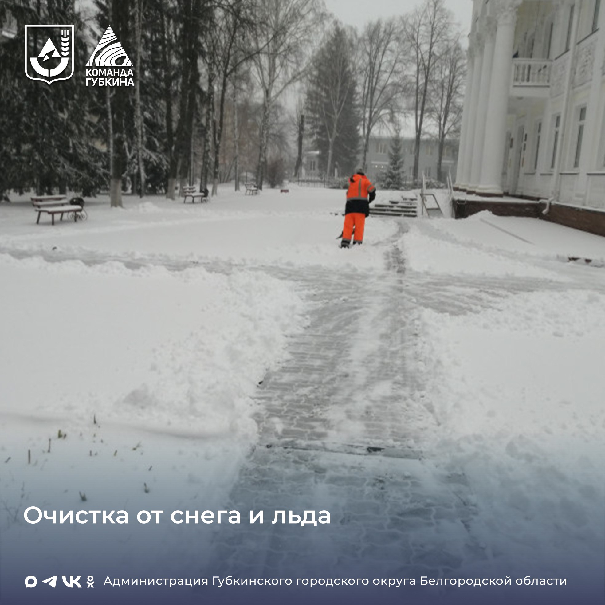 В соответствии с п. 10.2.1 Правил благоустройства территории Губкинского городского округа, утверждённых решением второго заседания девятой сессии Совета депутатов Губкинского городского округа от 25 октября 2018 года № 4 устанавливается период осенне-зимней уборки и предусматривает уборку и вывоз мусора, снега и льда, грязи, посыпку улиц противогололёдными препаратами. В зимний период дорожки, садовые диваны, урны и прочие элементы (малые архитектурные формы, подходы к ним, а также пространство вокруг них очищается от снега и наледи. Законом Белгородской области от 04 июля 2002 года № 35 «Об административных правонарушениях на территории Белгородской области» предусмотрена ответственность, в соответствии со ст. 3.23 «Неисполнение обязанности по очистке элементов благоустройства нежилых зданий, строений, сооружений от снега, наледи и сосулек».