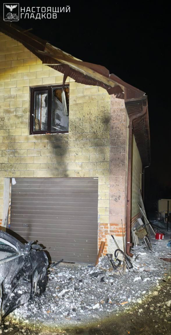 В доме выбиты окна, повреждены кровля, фасад и входная группа. Кроме того, повреждён припаркованный автомобиль.