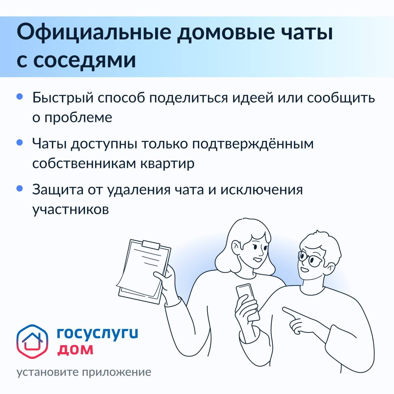 Официальные домовые чаты на платформе Госуслуг.