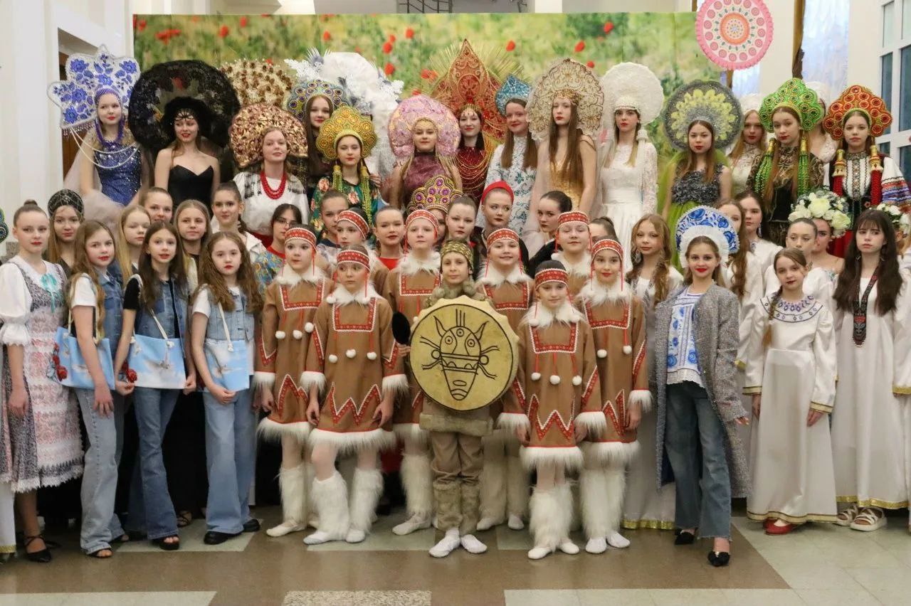 Фойе превратилось в красочную галерею ярких национальных локаций, позволяющих ощутить богатство культурных традиций наших соотечественников. Особое внимание привлекли уникальные экспонаты выставки русской народной одежды, коллекция кокошников и традиционные украшения в русском стиле, а также экспозиция кукол, представляющих разнообразие национальных костюмов.
