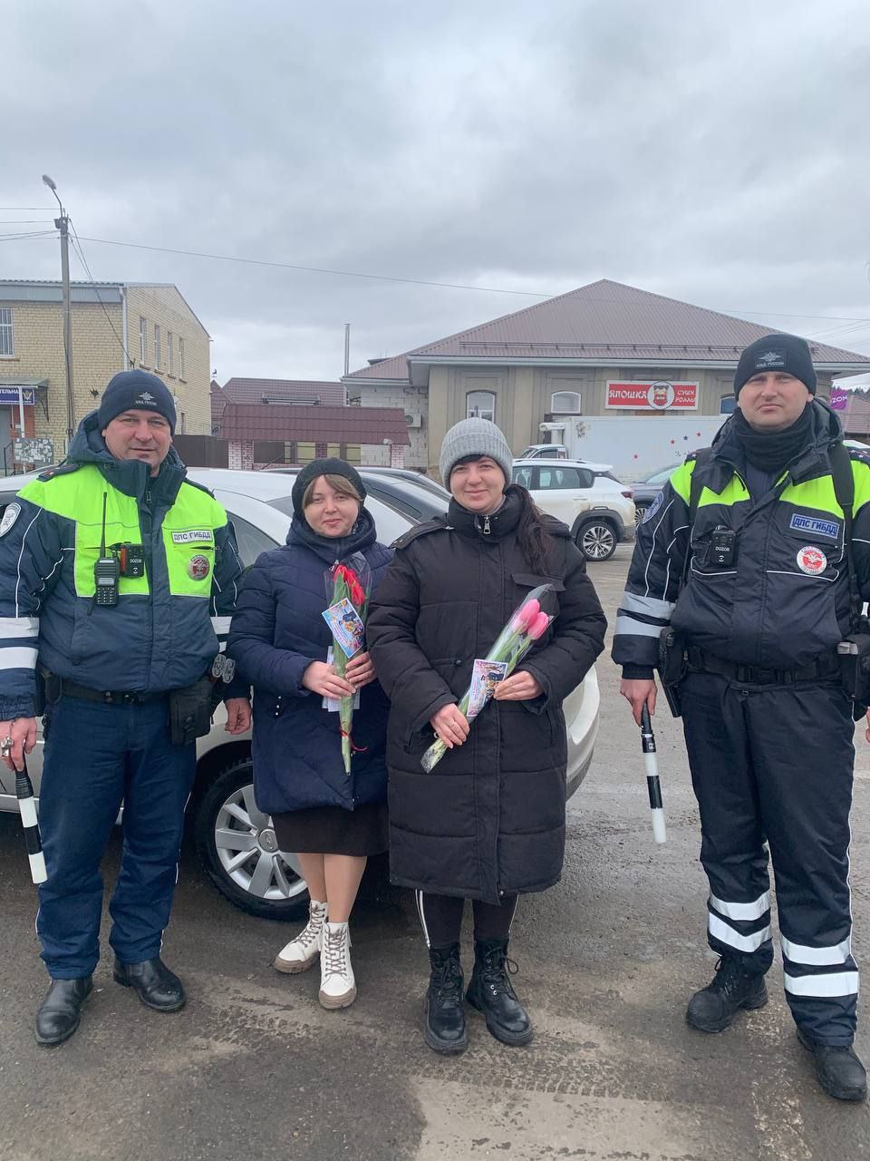 Водительниц, управлявших автомобилем, ждал сюрприз: вместо жезла, поднимающего руку, - весенние цветы. Автоинспекторы поздравляли женщин с самым цветочным праздником, желали счастья и добра, а также напоминали, что их всегда ждут дома, поэтому дорогу нужно выбирать безопасную.