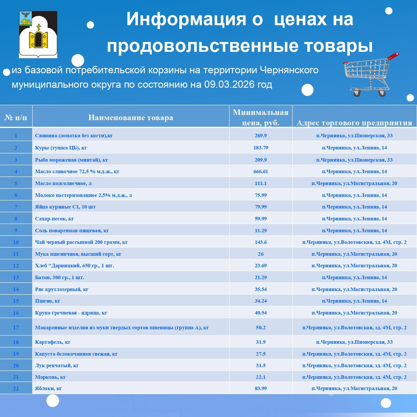 Доводим до вашего сведения актуальные цены на продовольственные товары базовой потребительской корзины.