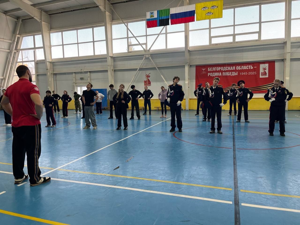 Сегодня в физкультурно-оздоровительном комплексе прошел муниципальный этап слета казачьей молодежи Новооскольского муниципального округа «Готов к труду и обороне».