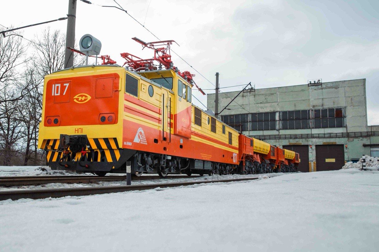 Машина состоит из электровоза и двух моторных думпкаров по 115 т – за сутки она перевозит около 7 тыс. т руды. По сравнению с предыдущей серией локомотивов НП-1 демонстрирует более высокую производительность и лучше адаптирован к условиям карьера.