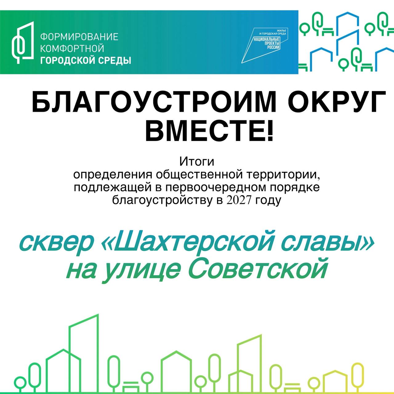 По итогам подсчета наибольшее количество голосов набрал сквер «Шахтерской славы» на улице Советской.