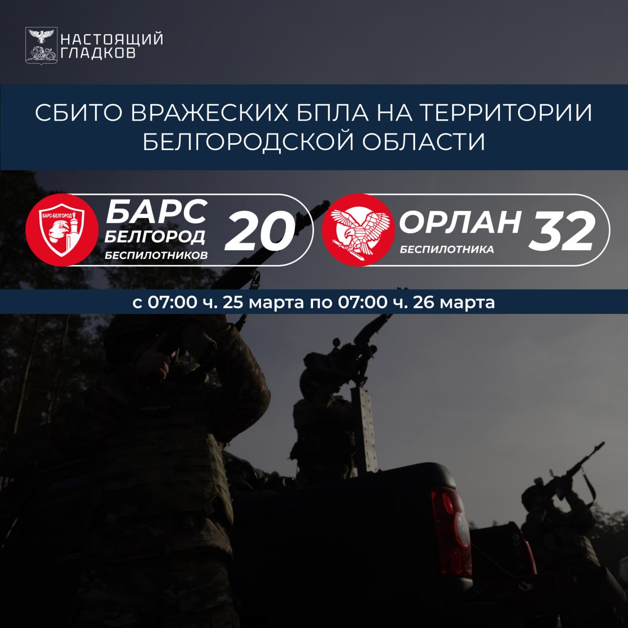 Информация о сбитиях всех типов вражеских БПЛА на территории Белгородской области подразделениями «БАРС-Белгород» и «Орлан»