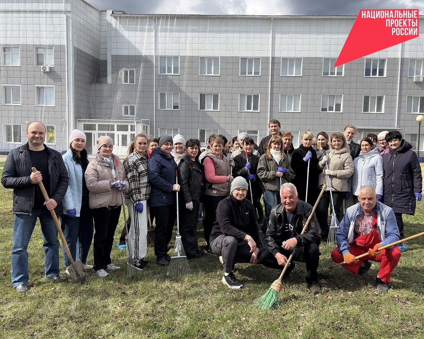 В рамках месячника добровольного служения региону нацпроекта «Экологическое благополучие» трудовой коллектив Краснояружской ЦРБ вышел на субботник.