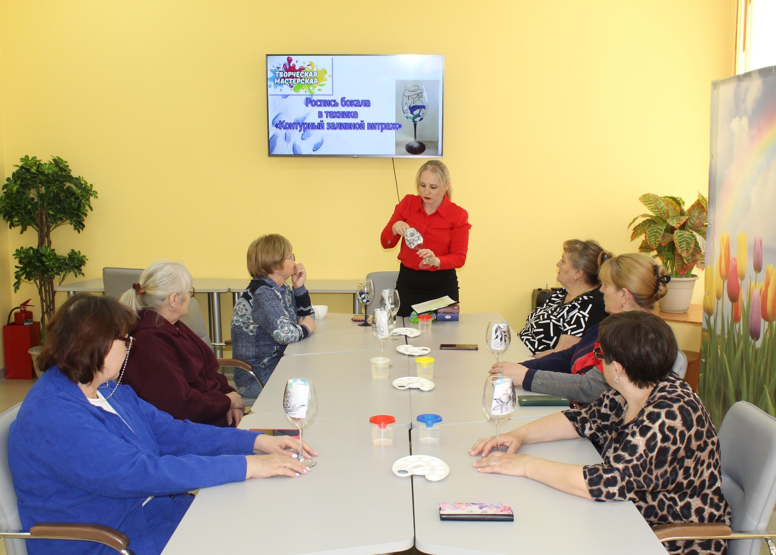 Специалист отделения дневного пребывания Игуменцева М.А. погрузила участников в мир «Контурного заливного витража», подробно рассказав о тонкостях этой техники и необходимых материалах. Под чутким руководством Марии Александровны, получатели социальных услуг приступили к созданию своих неповторимых шедевров!