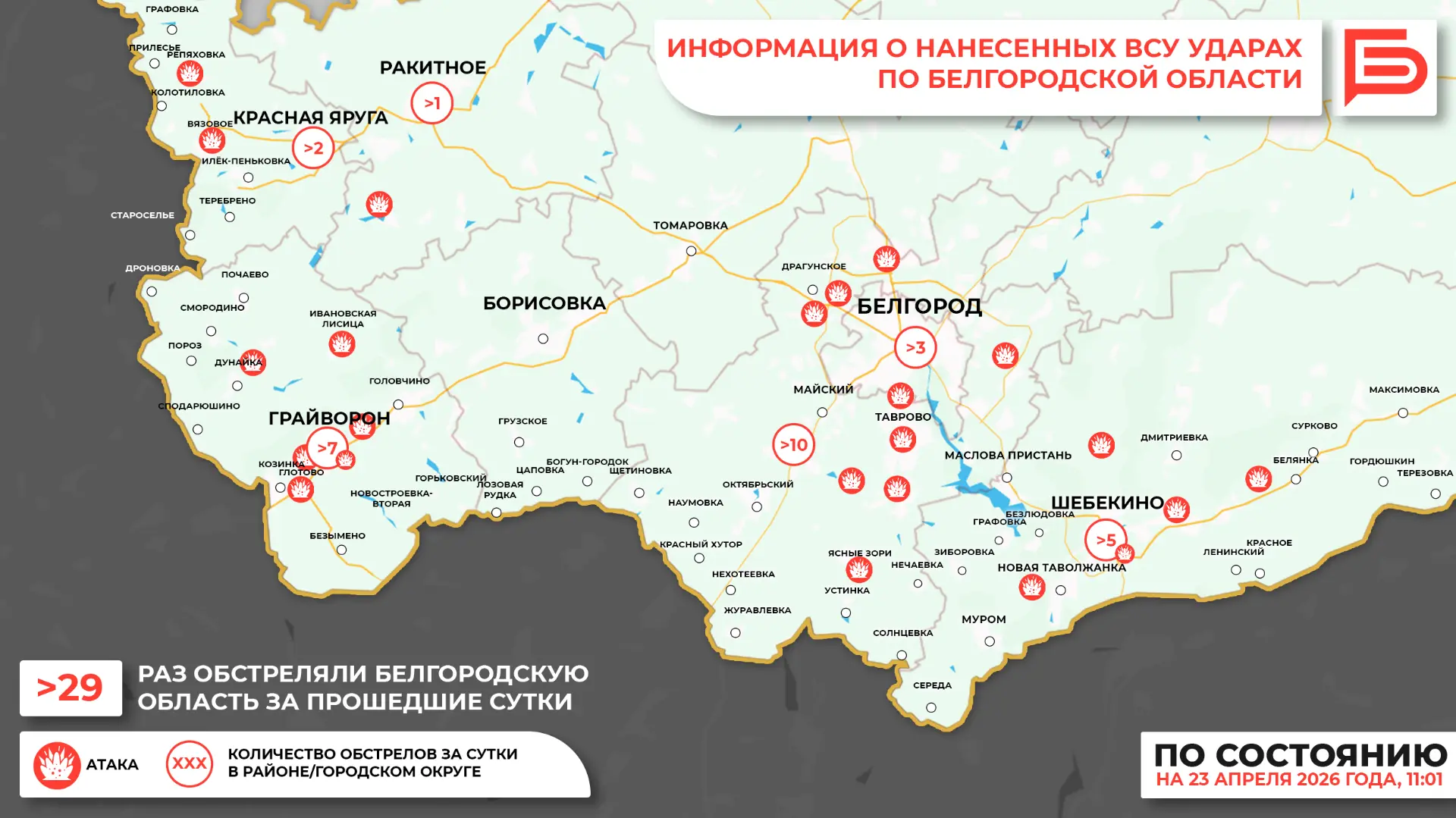 За прошедшие сутки ВСУ обстреляли Белгородскую область не менее 29 раз