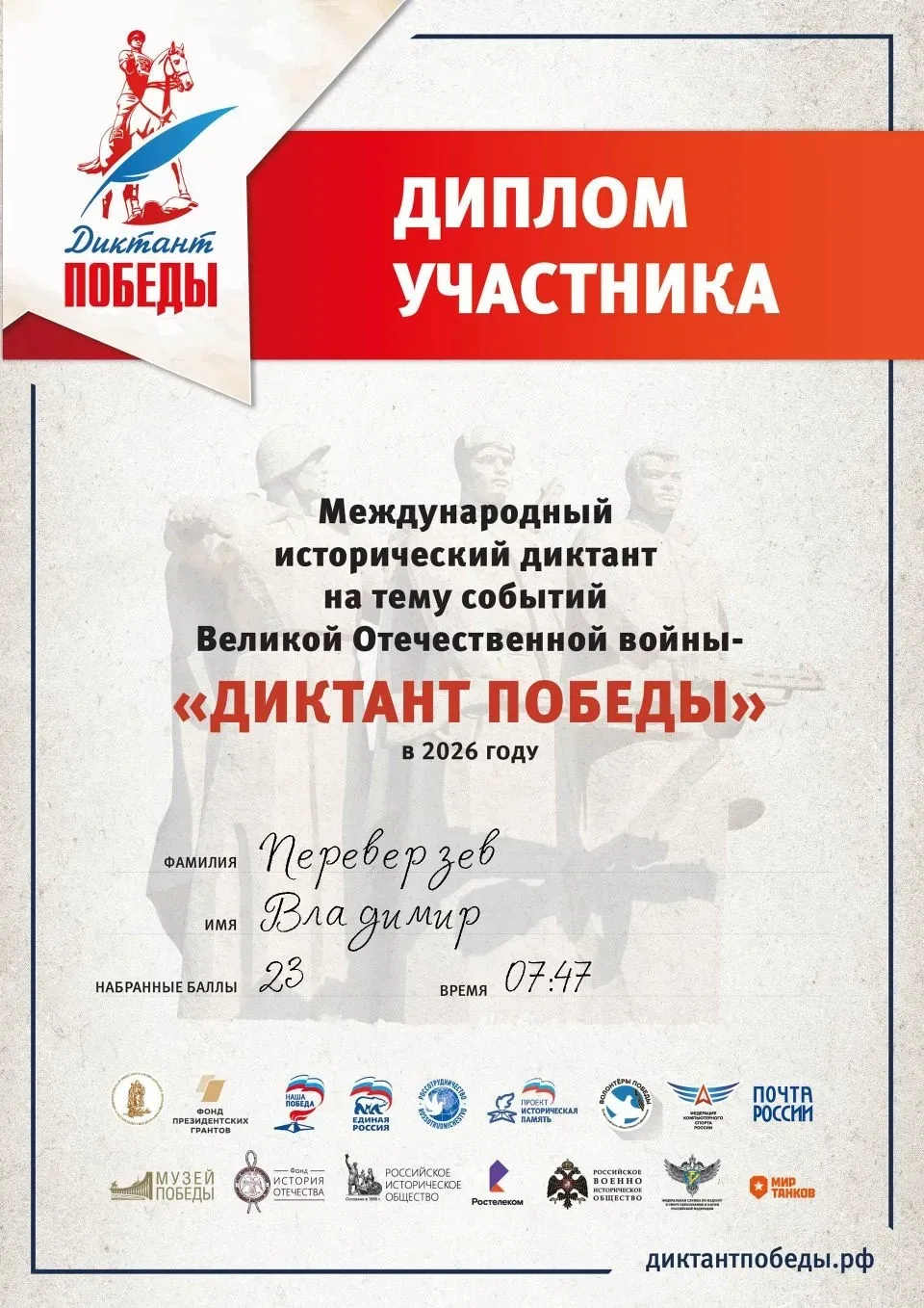 На 25 вопросов удалось ответить менее чем за полчаса. Пришлось всколыхнуть в памяти школьные уроки, но некоторые факты стали настоящим открытием. «Диктант Победы» - это не просто проверка эрудиции, а важный мост между поколениями, где за каждым заданием стоит живая судьба.