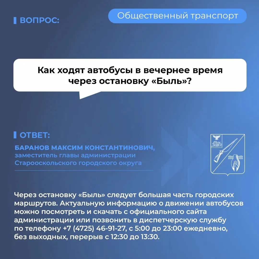 В рамках нашей постоянной рубрики отвечаем на вопросы жителей о работе общественного транспорта в округе. Сегодня рассказываем о маршрутах, которые ходят через остановку «Быль» в вечернее время, и где можно получить дополнительную информацию.