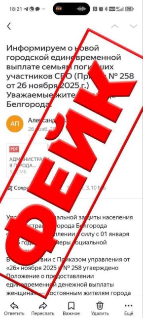 Рассылка ведётся якобы от имени Управления социальной защиты населения администрации Белгорода.В мэрии отметили, что сообщения не соответствуют действительности.Мы в MAX Подписаться на...
