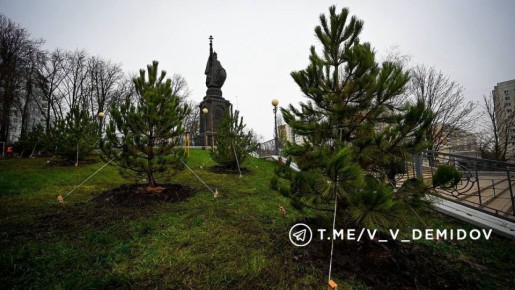На проспекте Богдана Хмельницкого посадили более 500 деревьев, а всего здесь появится 1100 новых растений. Параллельно высаживают 750 кустарников.