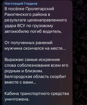 О трагедии сообщил губернатор Вячеслав Гладков, отметив, что атака на мирного жителя была целенаправленной.«Выражаю самые искренние слова соболезнования всем его родным и близким. Белгородская область скорбит вместе с вами…», – написал глава региона....