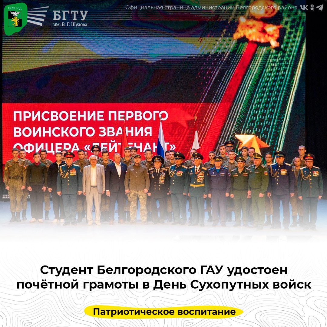 Студент Белгородского ГАУ удостоен почётной грамоты в День Сухопутных войск