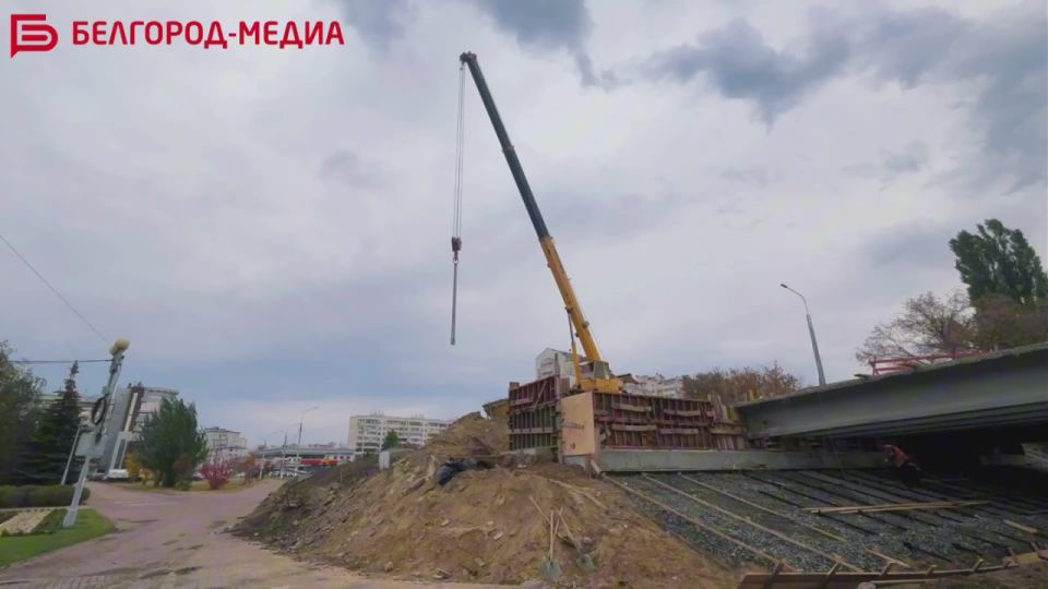 Строители завершают бетонирование опор моста по ул. Николая Чумичова в Белгороде и начинают устройство ригелей