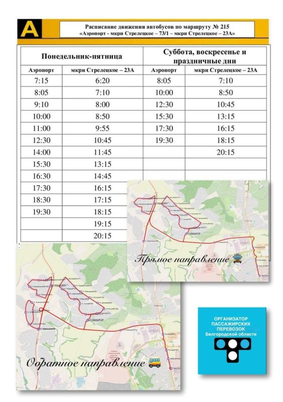 Как сообщает региональный Организатор пассажирских перевозок, с 13 октября на дорогу выйдут автобусы №215 «Аэропорт – микрорайон Стрелецкое – 73/1 – микрорайон Стрелецкое – 23А».