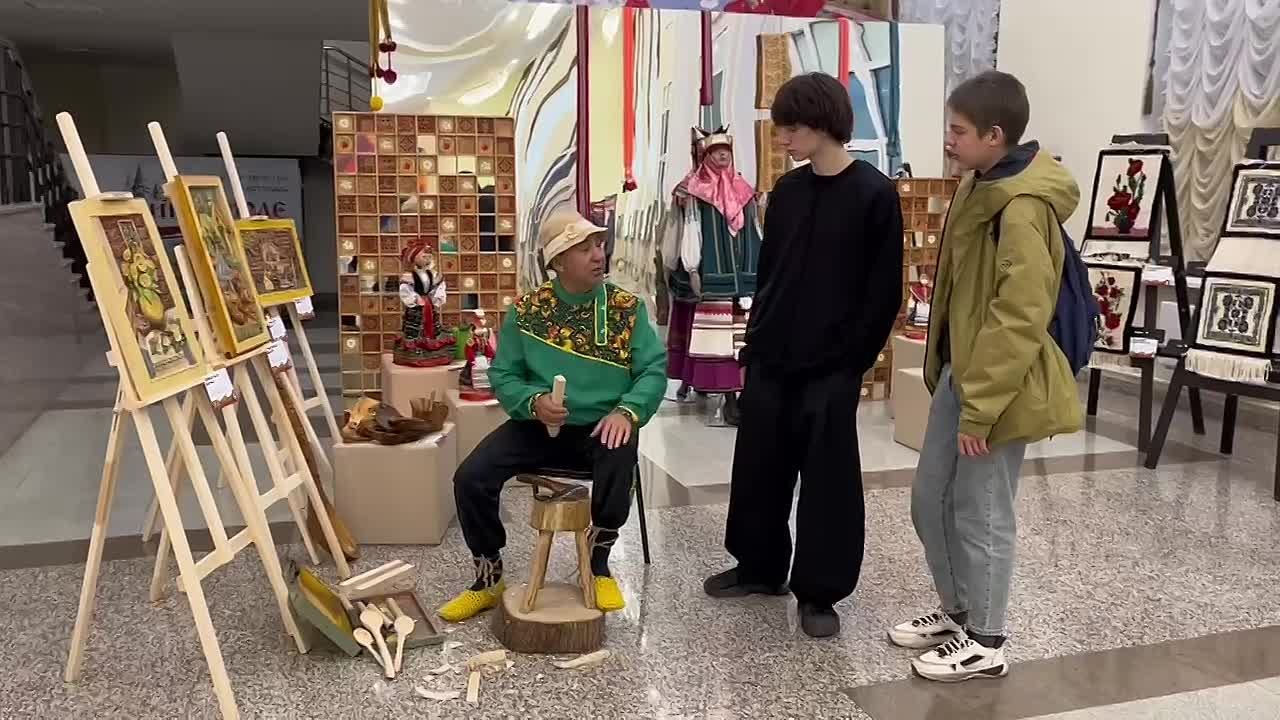 В фойе Центра была организована выставка работ мастеров декоративно-прикладного и изобразительного искусства. Были представлены уникальные изделия из дерева, ткани и кожи, выполненные в традиционных техниках.