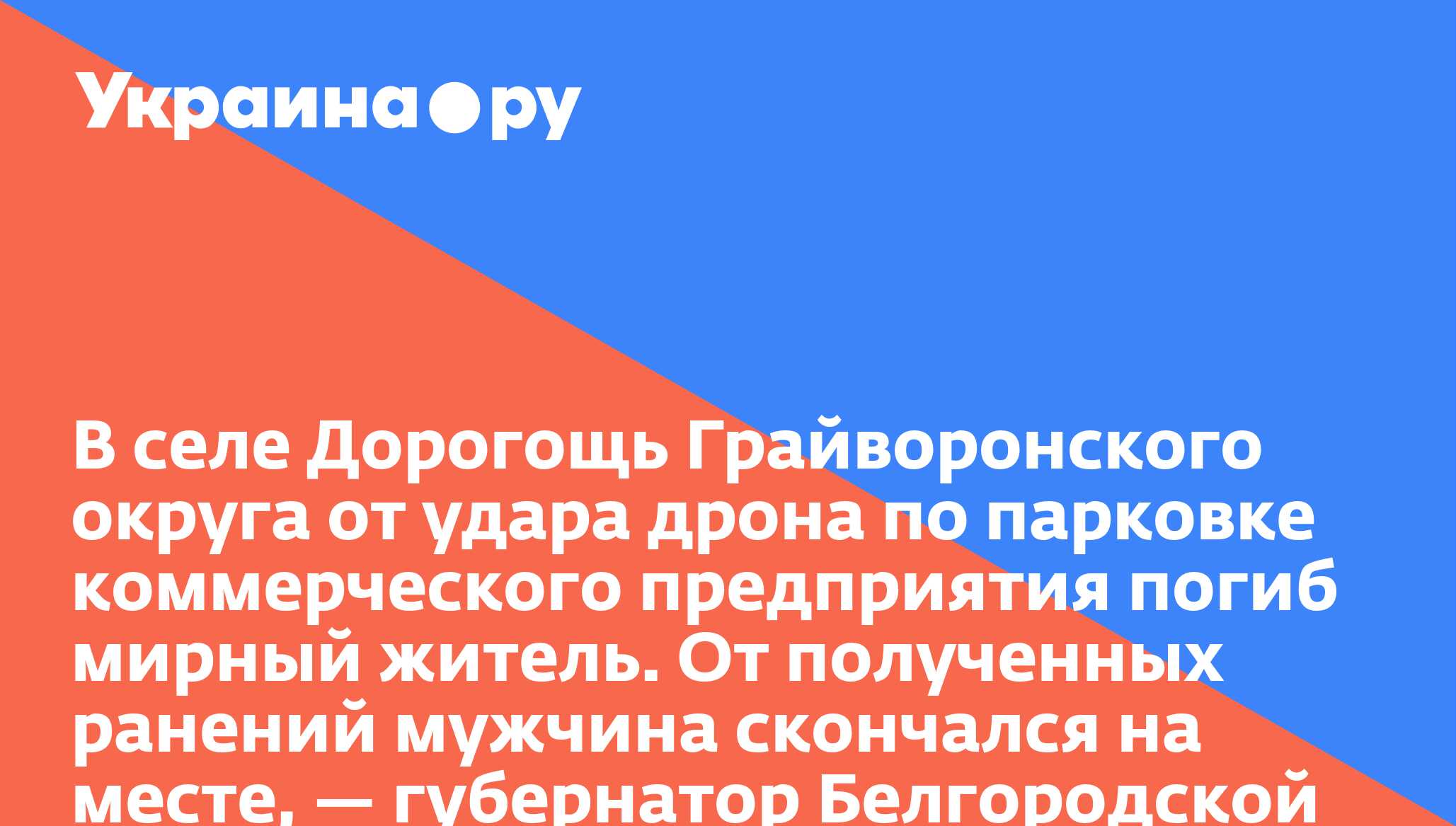 В селе Дорогощь Грайворонского округа от удара дрона по парковке коммерческого предприятия погиб мирный житель. От полученных ранений мужчина скончался на месте, — губернатор Белгородской области Гладков.