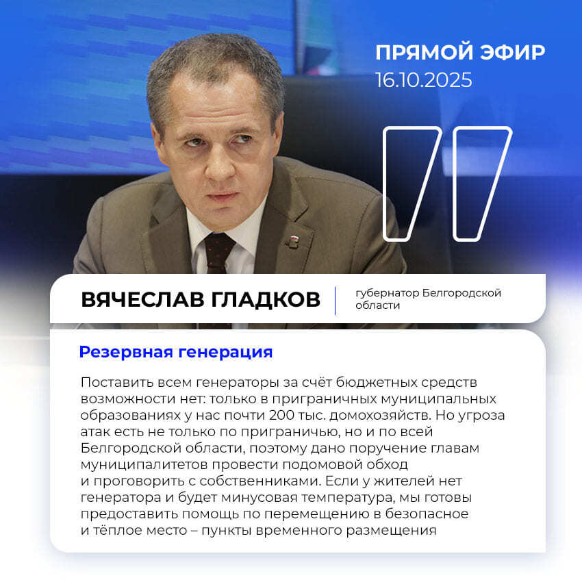 По его словам, власти должны понимать, какой процент жителей обеспечен средствами резервной генерации на случай отключения электроэнергии. Ситуация требует контроля из-за продолжающихся обстрелов по энергетике.