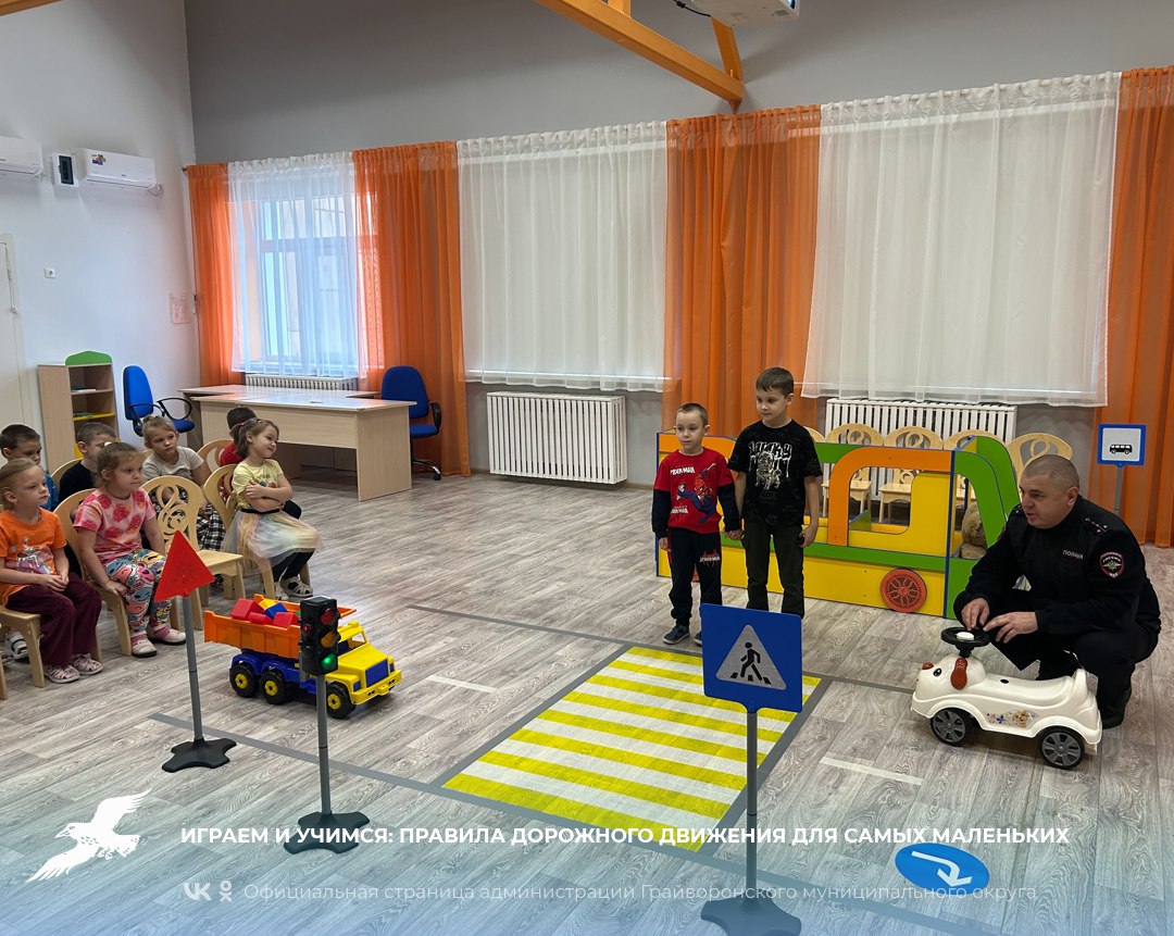 Врио начальника Госавтоинспекции ОМВД России «Грайворонский» Алексей Софинский провел увлекательное занятие с ребятами из детского сада «Капелька».